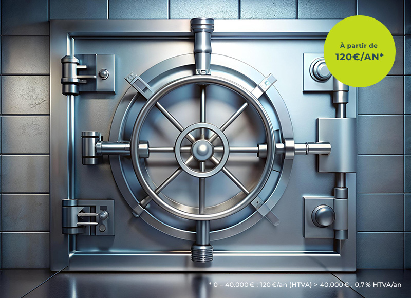 • Pour un dépôt d’une valeur allant de 0 à 40.000 €, les frais sont fixes à 120 € HTVA par an.